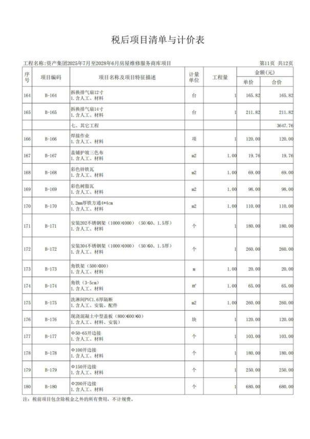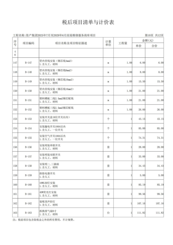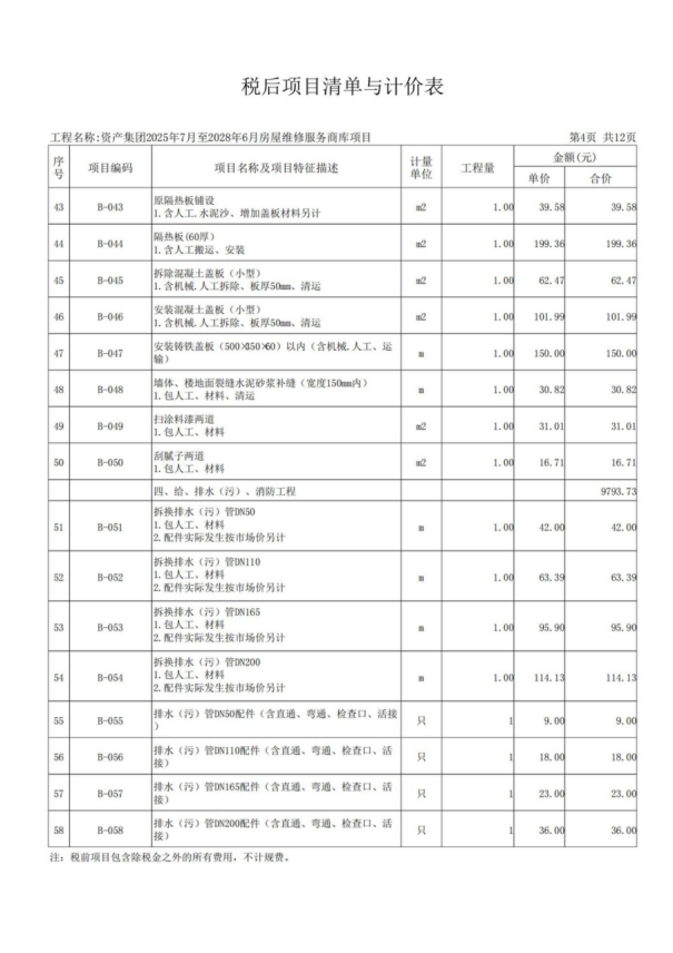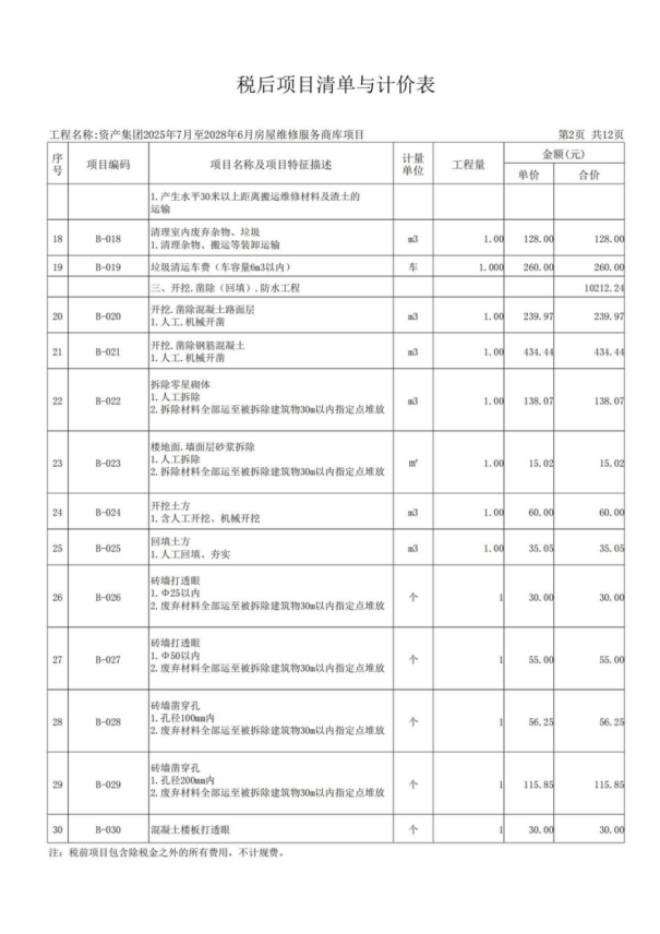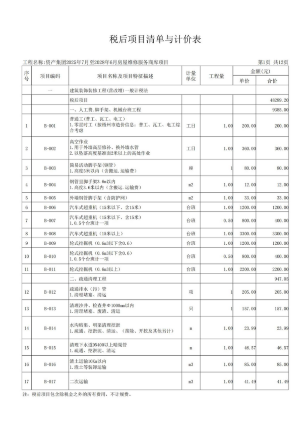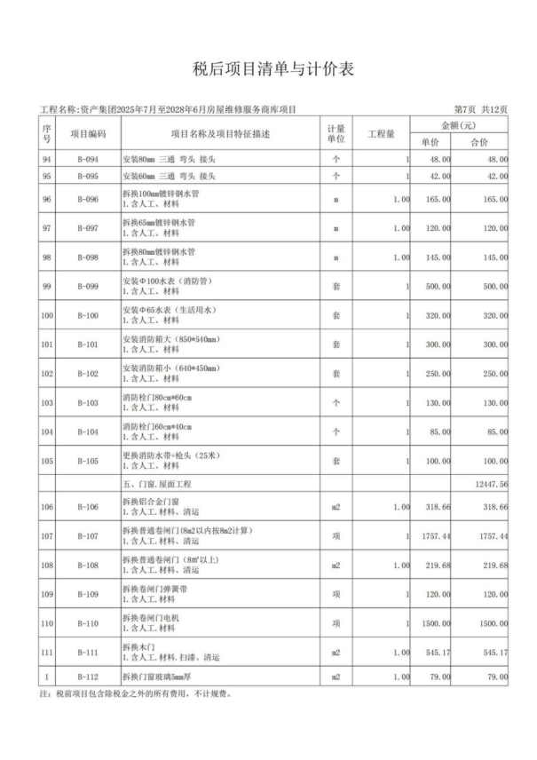 3、招标文件第二章 项目采购需求中(1)服务内容:负责梧州市城建资产管理集团有限公司委派的单项维修费用50万元(含)限额以下的房屋常见维修工程服务。主要内容包括但不限于:房屋防水、防渗漏工程;电气管线工程:给排水管道工程:小区内的给排水设施;道路等配套工程:装修工程以及其它维修项目(主要施工内容详见附表1) 内容更正为:(1)服务内容:负责梧州市城建资产管理集团有限公司委派的单项维修费用50万元(含)限额以下的房屋常见维修工程服务。主要内容包括但不限于:房屋防水、防渗漏工程;电气管线工程:给排水管道工程:小区内的给排水设施;道路等配套工程:装修工程以及其它维修项目–主要施工内容详见下表: