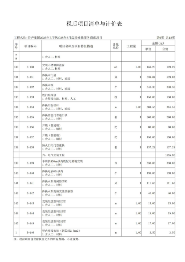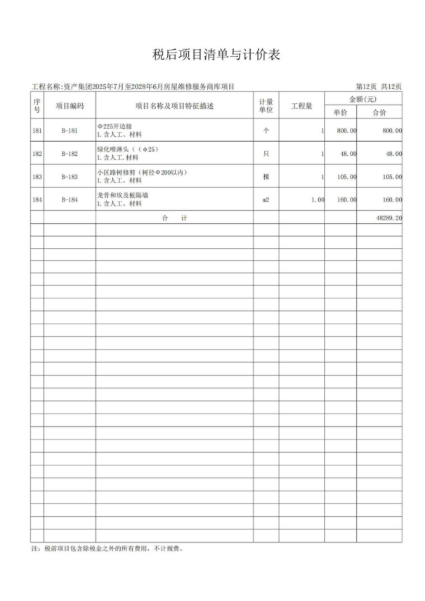 1、项目名称:资产集团2025年7月至2028年6月房屋维修服务商库项目
